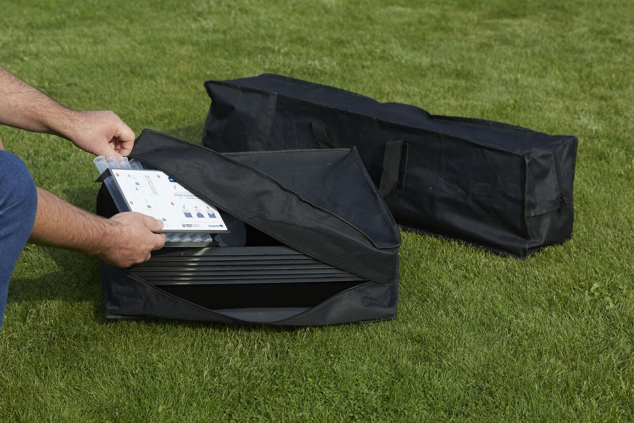 At large working widths we recommend using test trays to control the fertiliser's spreadability. We offer a set of 7 test trays with measuring pipes for spreading test in the field. In the spreader's manual you will find a thorough instruction and guidance on how to achieve optimum overlap in the field based on the result of the tray test.
